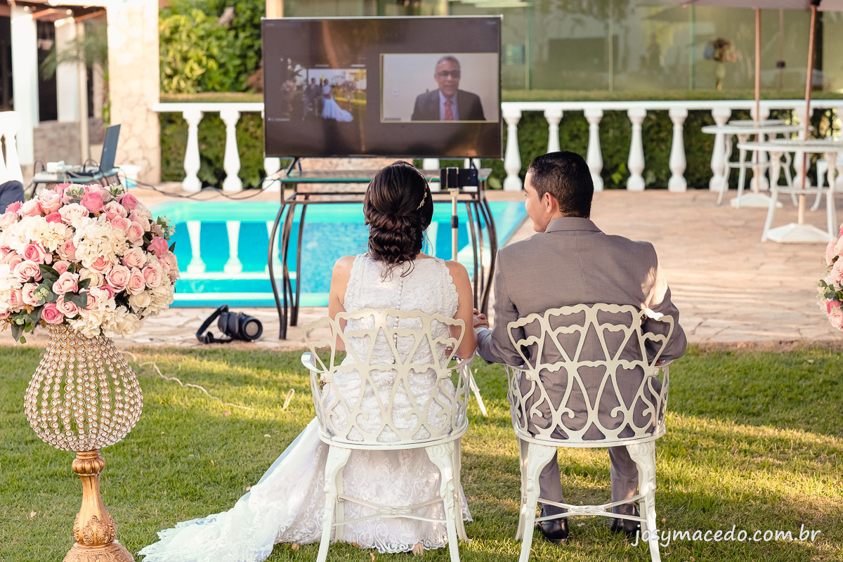 Ao decorrer da cerimônia eu fiquei tão feliz de perceber o tamanho do carinho que eles receberam de todos os convidados, mesmo que de forma virtual! A demonstração de amor e carinho nos contagia de todas as formas, mesmo que ela venha através outro lado da telinha!