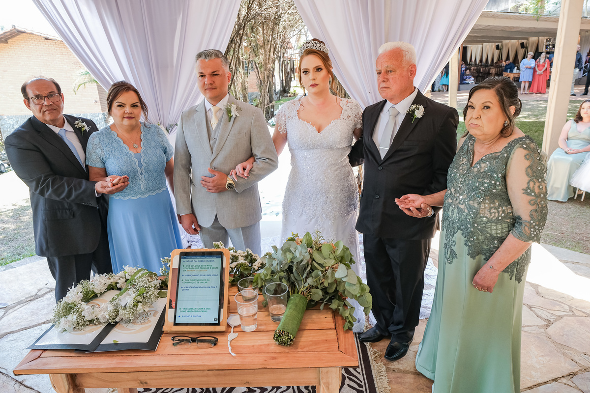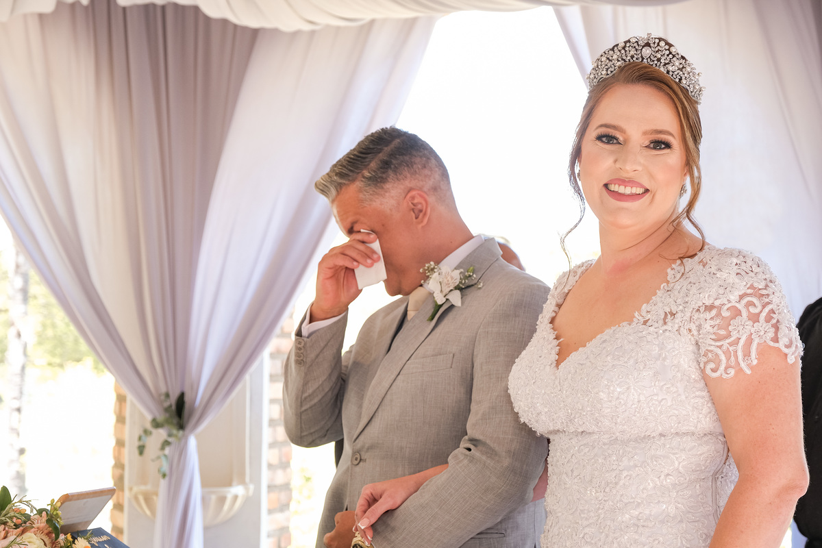 tivemos um celebrante especial, realizando a cerimônia em um espaço lindíssimo e encantador que trouxe lindos sorrisos para os noivos, relembrando toda sua trajetória juntos até chegar ao altar.