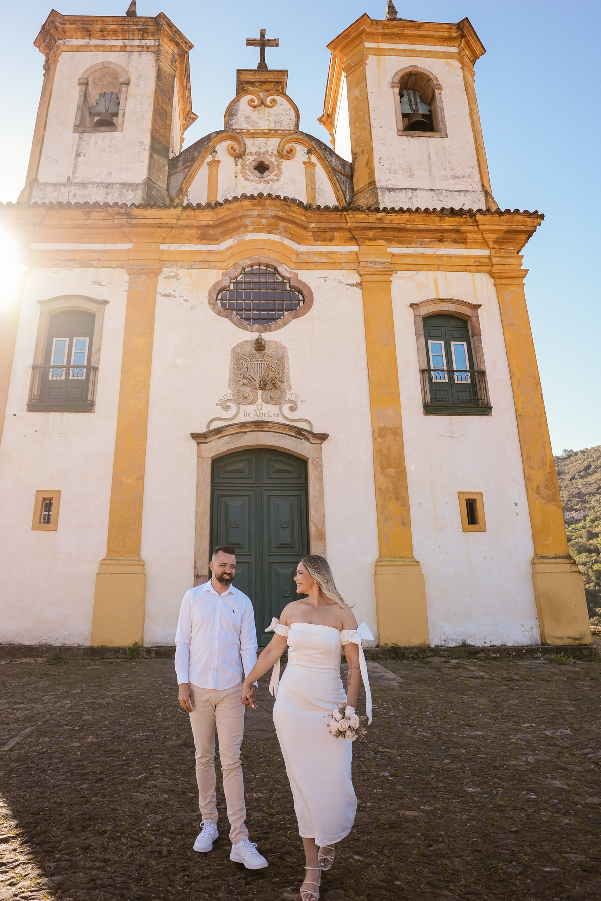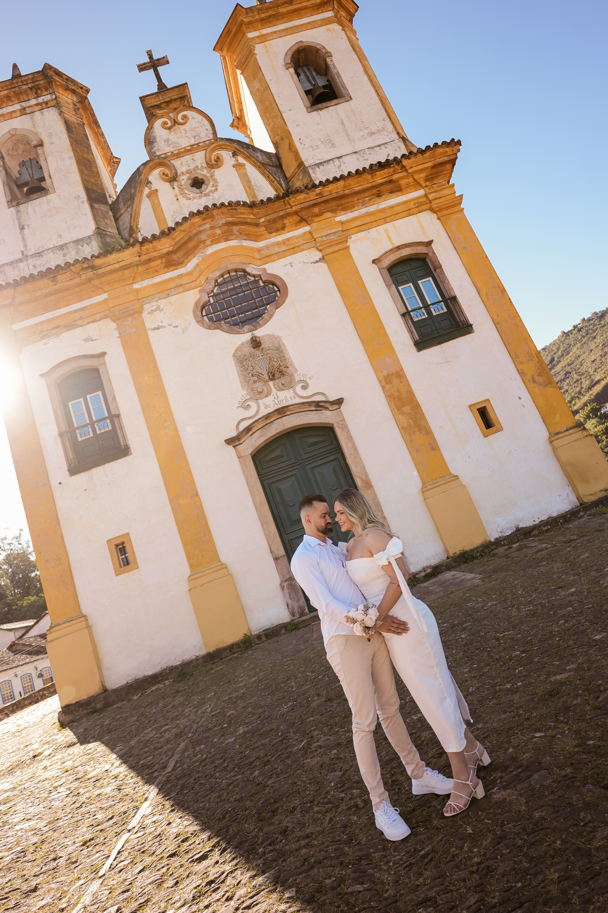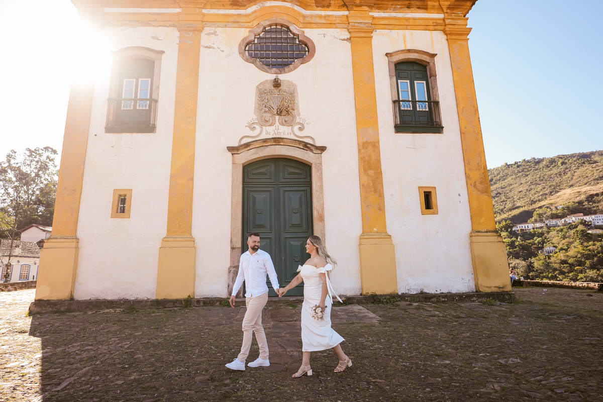 A cerimônia não acontecerá na igreja, mas ela fazia questão de ter um registo que representasse esse momento, e ao mesmo tempo queria algumas fotos em cachoeira, então estudamos e fizemos o melhor roteiro possível passando pelas igrejas e pelas históricas ruas de Ouro Preto até chegar no parque das andorinhas e registrar um por do sol incrível.